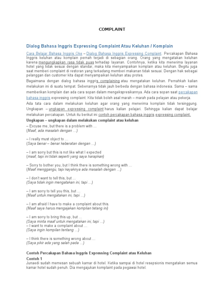 Contoh Dialog Komplain Di Hotel Dalam Bahasa Inggris - Temukan Contoh